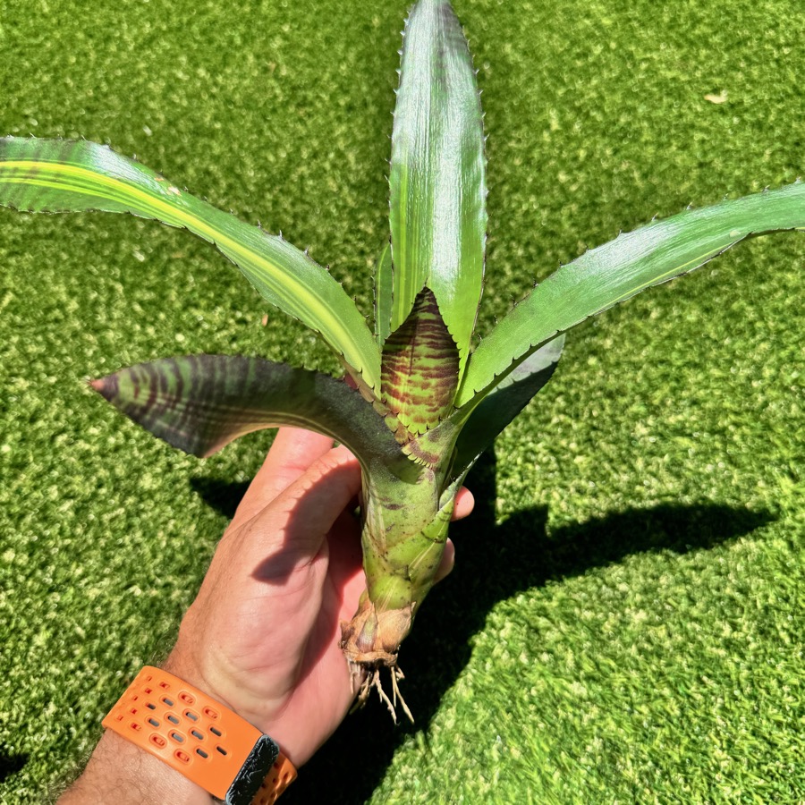 This bromeliad can tolerate quite a bit of morning and afternoon sun, but I recommend protecting from the more intense midday sun. Of course, dappled sun/shade is perfect too.